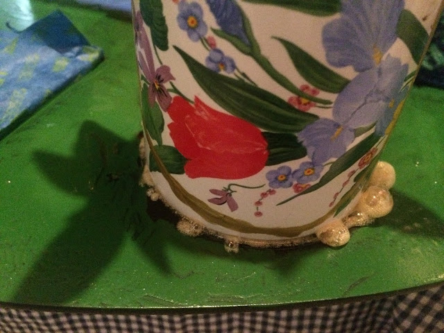 Once that had all dried, I sponged on a brighter shade of green and sprinkled on that “spring meadows” confetti paper dust onto the wet paint. Finally, I finished off the grass by hot gluing some green marbles to the bottom—something I’d seen lying around the house which I thought would add more dimension to the piece.